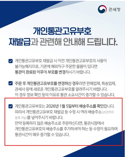 긴급공지: 개인통관부호 재발급 관련